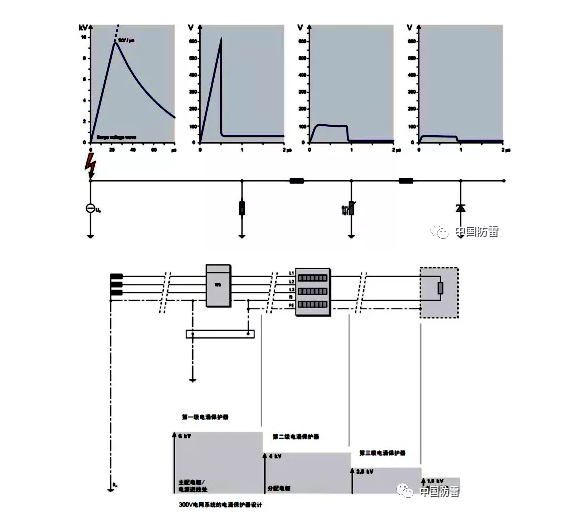 因此,仅靠避雷针防雷还不够,必须设置多级防雷系统,各级分类保护;多种元件来防雷电、防过电压。通常使用三类基本保护元件: