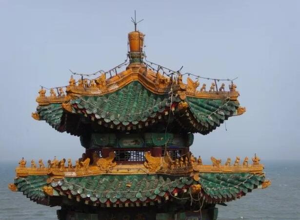 屋顶造型各异、种类繁多,主要有庑殿、歇山、悬山、硬山、攒尖、卷棚等形式。屋顶中直线和曲线组合,形成向上翘的飞檐,不但扩大了采光面、有利于雪、雨水排泄,而且增添了建筑物的美感。
