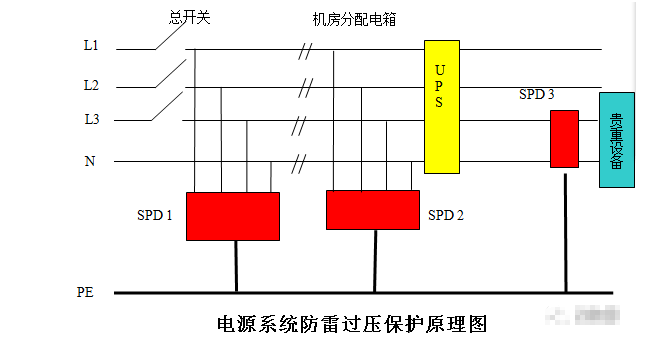 由于上述原因,用单一的器件或单级保护很难满足自控设备对电源的要求,所以对电源防雷应采取多级保护措施。电源系统雷击电磁脉冲的防护,一般采用三级防护: