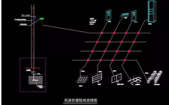 对通信网络系统在建筑物楼内的布线和接地方式要求:通信电缆以及地线的布放应尽量集中在建筑物的中部。通信电缆线槽以及地线线槽的布放应尽量避免紧靠建筑物立柱或横梁,并与之保持较长的距离,通信电缆线槽以及地线线槽的设计应尽可能位于距离建筑物立柱或横梁较远的位置。机房防雷器