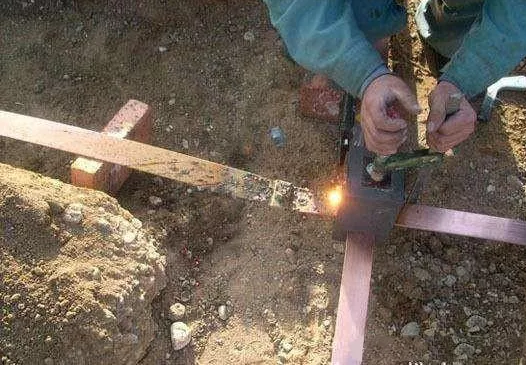 采用角钢50×50×5mm,长1.5m2.5m;角钢与角钢的连接用扁钢,间隔≥45m,角钢≥40×4mm;引线采用50mm2多股铜芯绝缘线或按设计规定;引线与扁钢连接采用焊接,焊接点需进行防腐处理;接地体离通信机房的距离为15m50m;接地体埋深1m;在腐蚀地带接地极需有防腐措施。